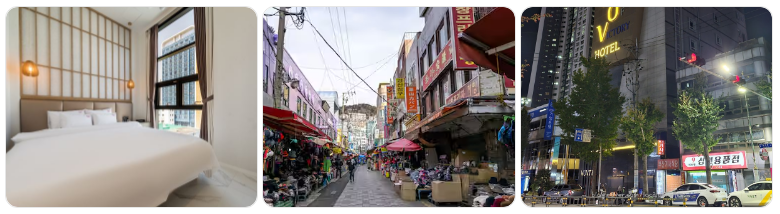 남포동은 자갈치시장, 국제시장 등 부산의 대표 관광지가 모여 있는 지역입니다. 전통적인 부산 분위기를 느끼고 싶다면 이 지역 숙소를 추천합니다.